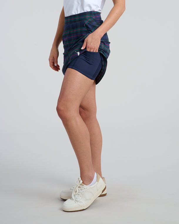 The Spinner Skirt is sure to be a winner on the course. Now available in Dark Tartan!